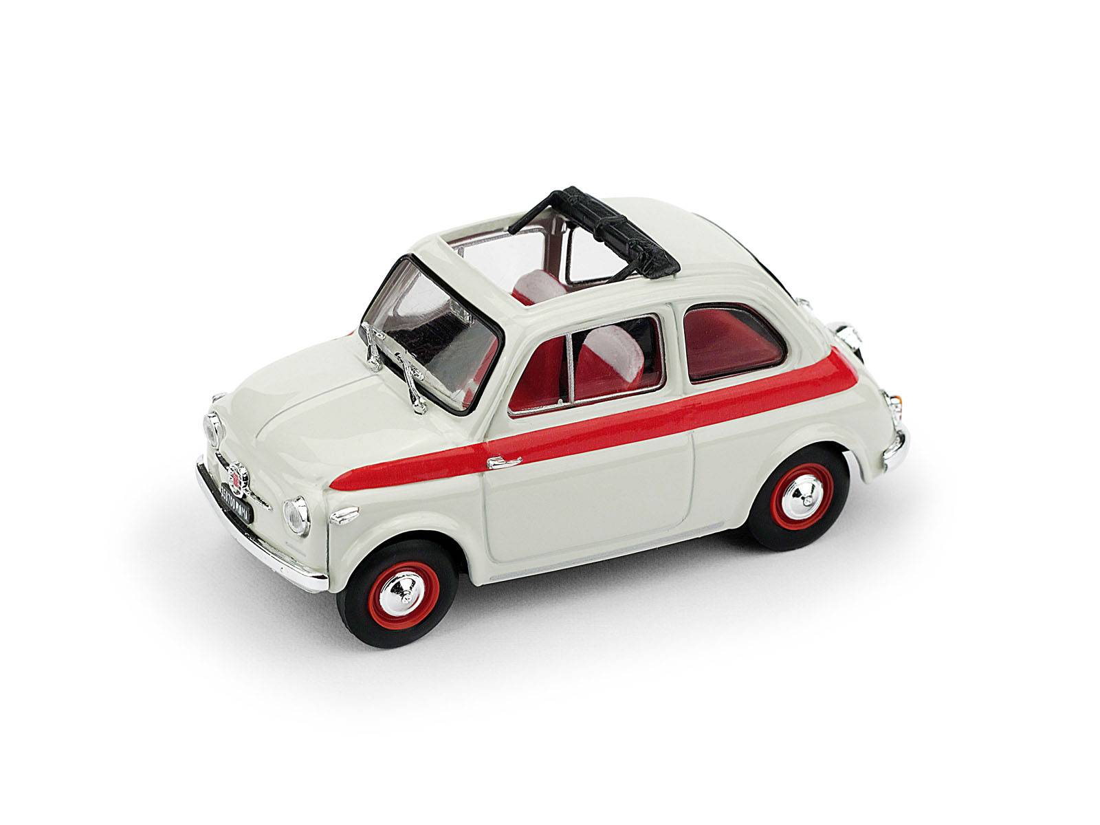 MODELLINO IN SCALA COMPATIBILE CON FIAT 500 1959 TETTO APRIBILE SPORT 2a SERIE APERTA BIANCO/ROSSO 1:43 BRUMM BM0603