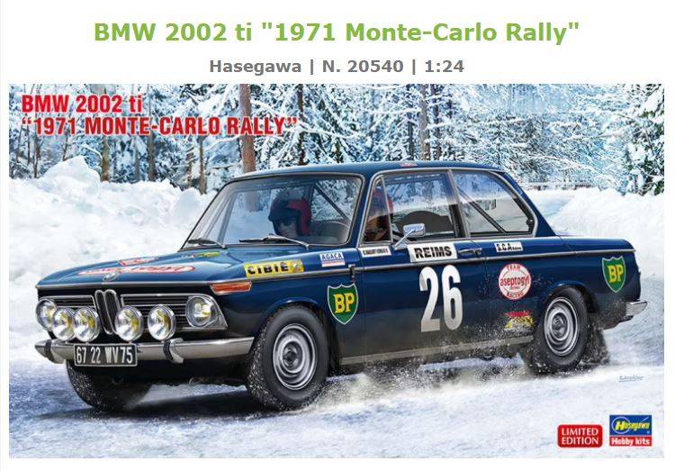 KIT DA MONTARE IN SCALA COMPATIBILE CON BMW 2002 Ti 1971 MONTE CARLO RALLY KIT 1:24 HASEGAWA HA20540 Marca/Brand HASEGAWA
