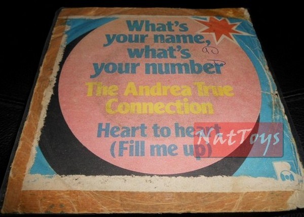 7" 45 GIRI The Andrea True Connection WHAT'S YOUR NAME, WHAT'S YOUR NUMBER/HEART TO HEART (FILL ME UP) (Italy 1978, BUDDAH BDA 582) - G/VG