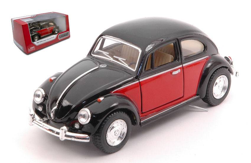 MODELLINO IN SCALA COMPATIBILE CON VW CLASSICAL BEETLE 1967 BLACK/RED cm 12 BOX KINSMART KT5373WBK