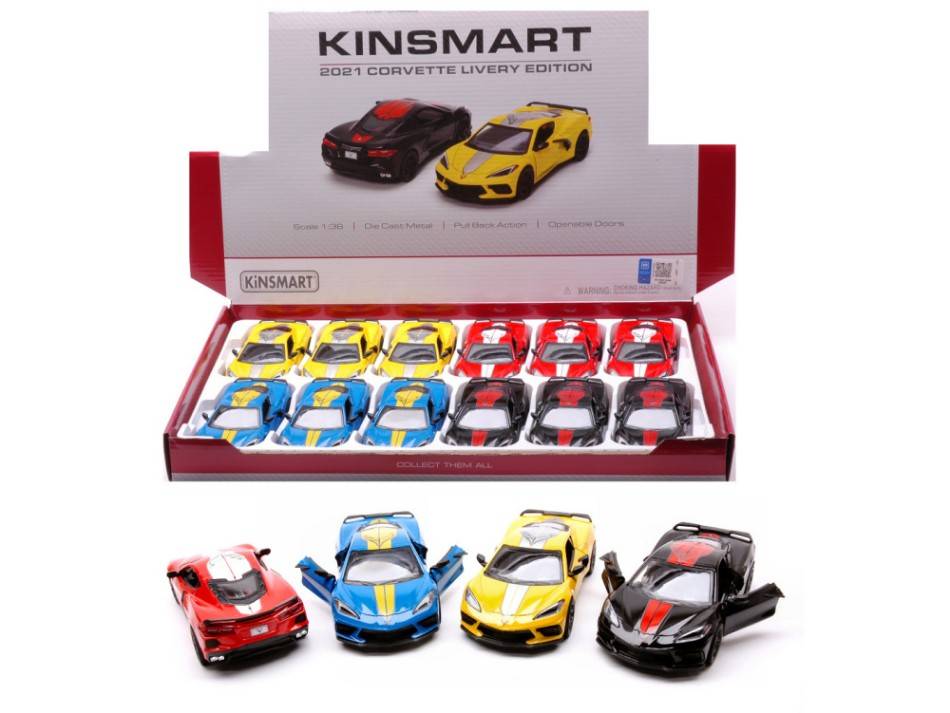 MODELLINO IN SCALA COMPATIBILE CON CORVETTE LIVERY EDITION 2021 COL.ASS. cm 12 KINSMART KT89651