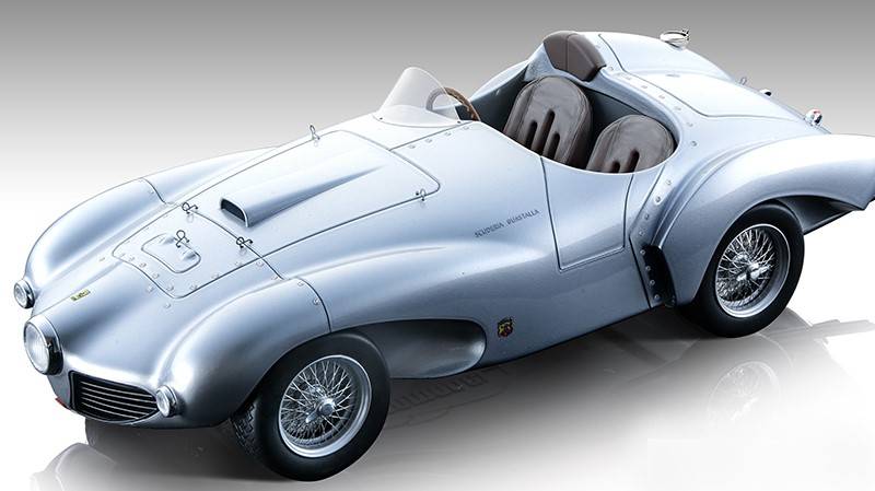 MODELLINO IN SCALA COMPATIBILE CON FERRARI 166 MM ABARTH PRESS VERSION 1953 MET.SILVER 1:18 TECNOMODEL TMD18209B